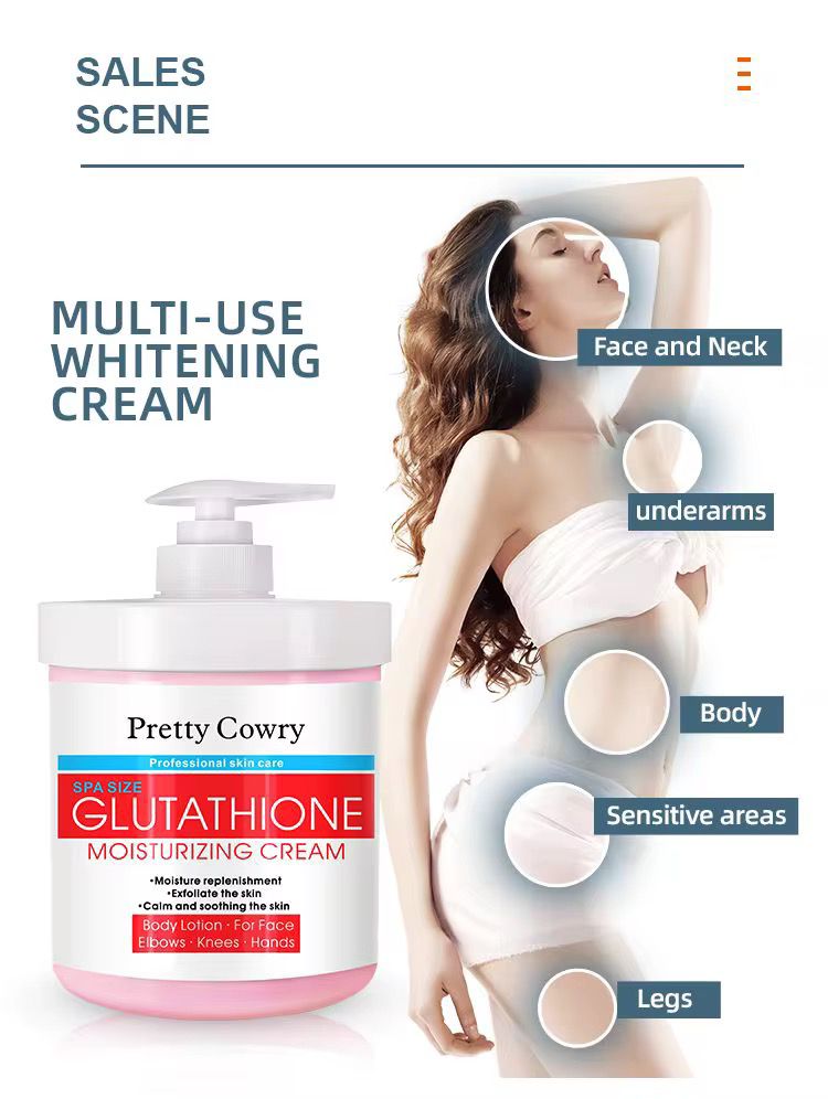 Reveal smoother, healthier-looking skin with the Pretty Cowry Glutathione Moisturizing Cream. This spa-size hydrating cream is formulated to deeply moisturize, gently exfoliate, and help improve the appearance of uneven skin tone. Enriched with skin-conditioning ingredients, it leaves your skin soft, radiant, and well nourished.